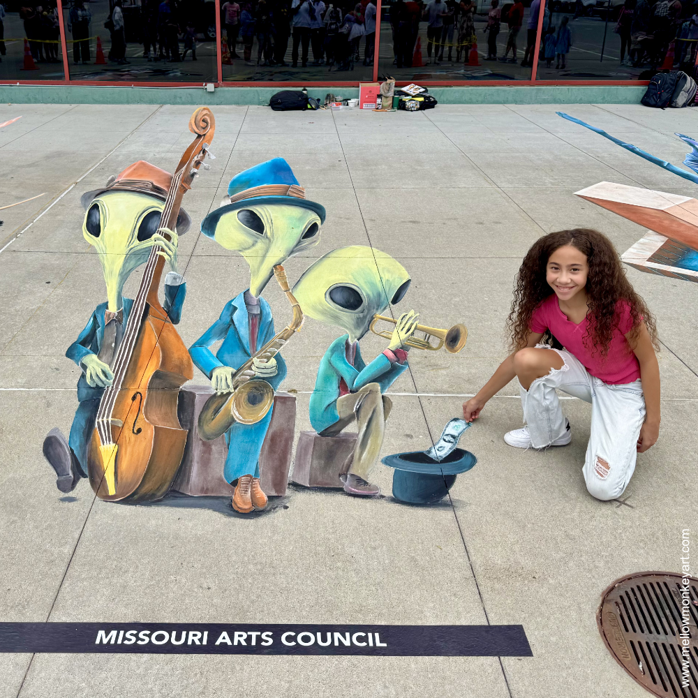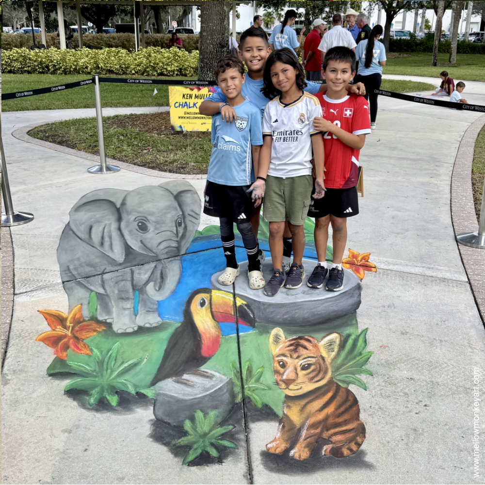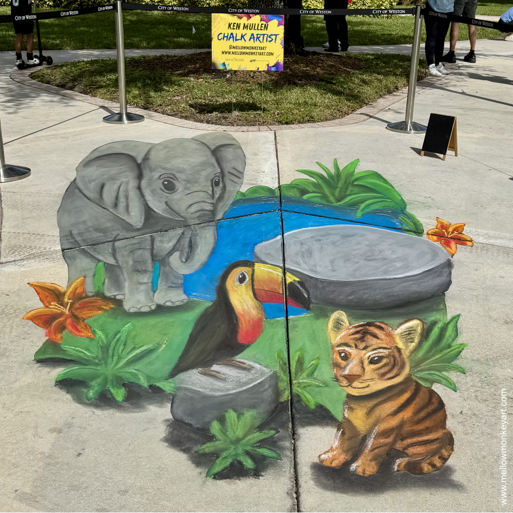 Mellow Monkey Art is Ken Mullen, an award-winning chalk artist, street painter, and muralist from South Florida, who specializes in 3D chalk art, 2D chalk art and chalk portraits. You can see his full portfolio of 3D chalk art, 2D chalk art, and wall murals by visiting Mellow Monkey Art.